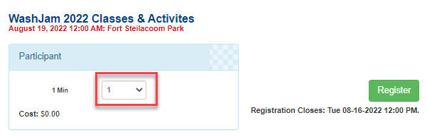 Step 1. Choose the number of Scouts to register, and click the green button.