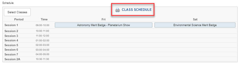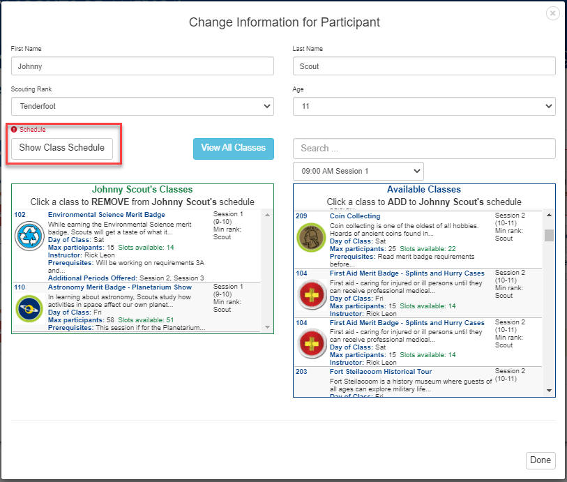 Step 3. When you have entered the Scout's name, rank and age, Click Select Classes